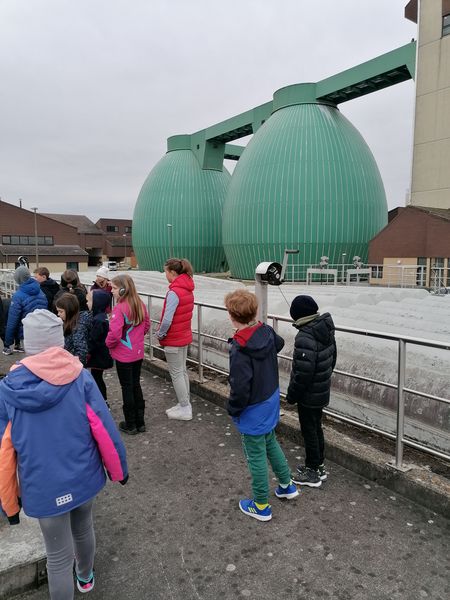 „Hier stinkt’s aber richtig!“ So oder so ähnlich klang es bei dem Besuch der Kläranlage der Klassen 4a und 4b. Den Weg des Abwassers aus dem Kanal durch die verschiedenen Reinigungsstufen bis hin zur Einleitung in die Donau zu verfolgen, forderte jedoch nicht nur den Geruchssinn heraus. Zuerst durften wir nämlich ein kleines Wassertierchen unter dem Mikroskop bei seiner „Arbeit“ beobachten. Schließlich tragen einige von ihnen einen nicht unerheblichen Teil zur Reinigung bei. Die Gegenstände, die aus dem Wasser gezogen werden, erstaunten uns alle: von Tennissocken bis Plastiktüten und Essensresten war alles dabei. Dass am Ende das Wasser doch wieder so sauber wird, dass man es in die Donau einleiten kann, war für alle eigentlich kaum zu glauben. Das Highlight der Führung wartete jedoch am Ende auf uns: wir durften die Plattform auf den Faultürmen erklimmen und den Blick über die Landschaft genießen – für viele war das dann doch noch die größere Herausforderung als der Geruch.