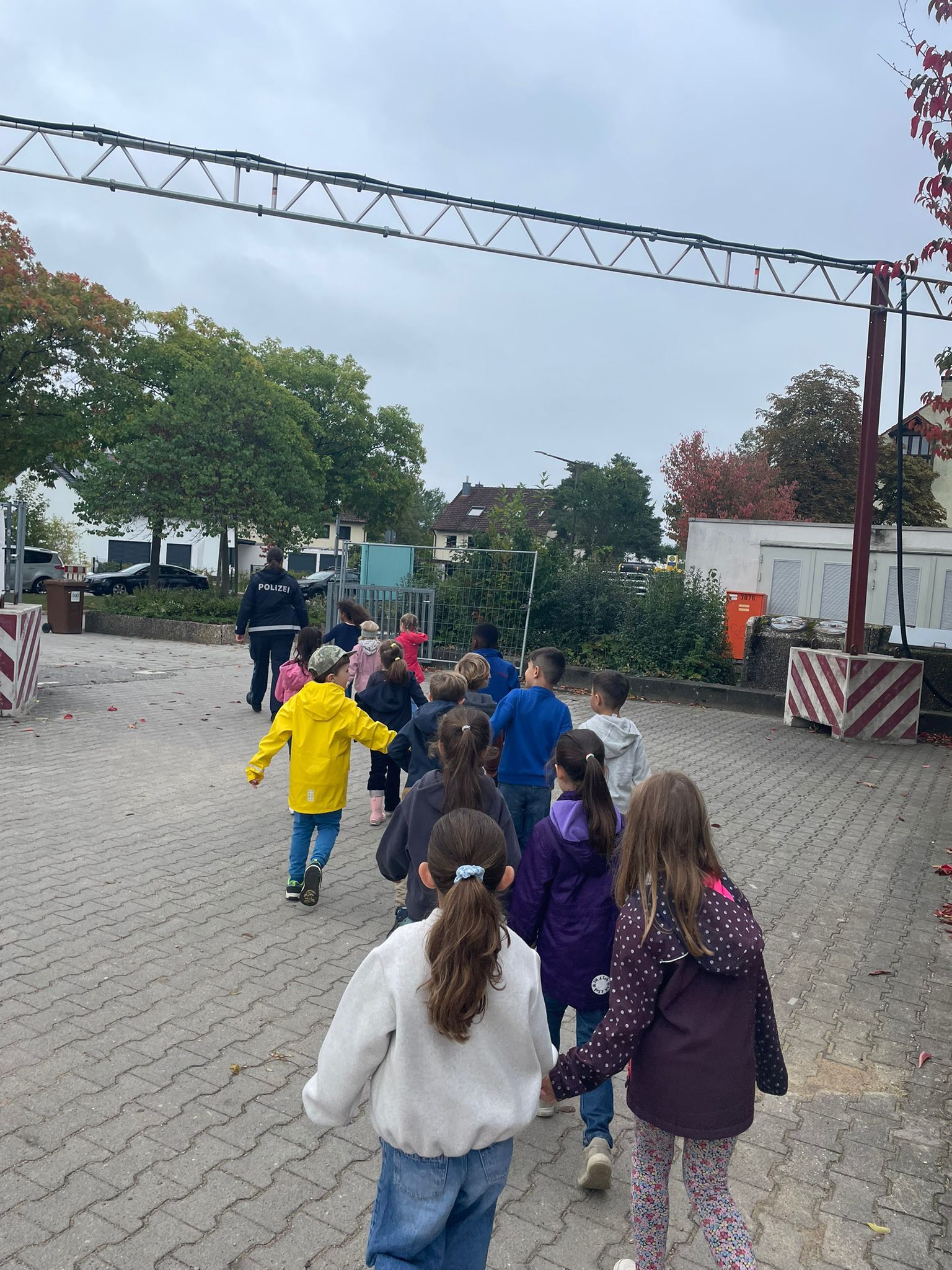 Bereits nach der allerersten Schulwoche hatten die ersten Klassen Besuch von der Polizei. Frau Zimmer war es ein großes Anliegen mit den neuen Schulkindern ein kleines Schulwegtraining zu machen. Zuerst wiederholten wir gemeinsam im Klassenzimmer die wichtigsten Regeln und gingen dann raus auf die Straße. Gemeinsam mit der Polizistin überquerte jedes Kind die Straße und achtete dabei auf die besprochenen Regeln. Wir bedanken uns bei Frau Zimmer für ihren Besuch.