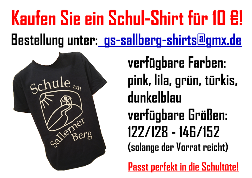 Der Elternbeirat der GS am Sallerner Berg verkauft Schul-T-Shirts in verschiedenen Farben und Größen. (855,7 KiB)